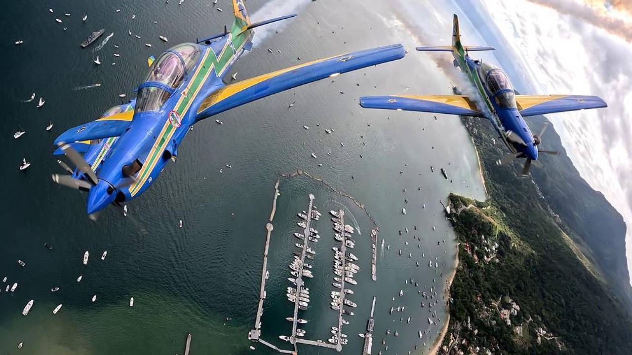 Pela primeira vez na história, a Esquadrilha da Fumaça e o Navio-Veleiro Cisne Branco se encontraram em um mesmo evento. Os dois marcaram a abertura da 52ª Semana Internacional de Vela de Ilhabela Daycoval, na manhã deste domingo (20).