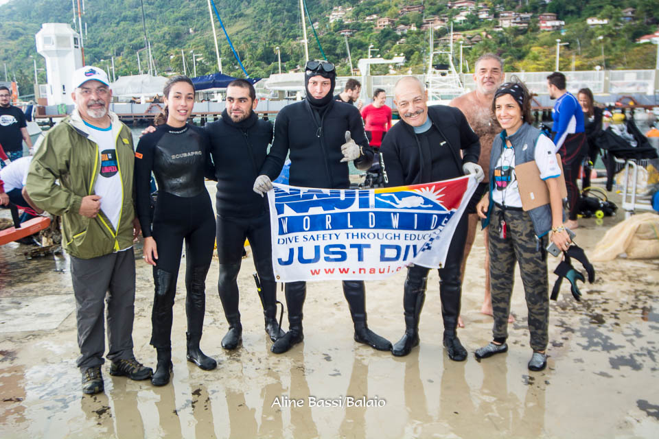 Enquanto os Escoteiros do Mar faziam a limpeza da praia de Santa Tereza, ao lado d o YCI um grupo de mergulhadores explorava as áreas submersas da marina em busca de resíduos.