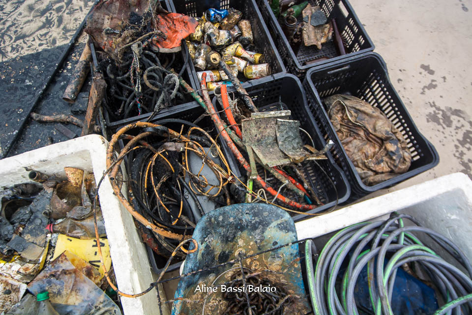 Foram encontrados desde apetrechos de pesca, até latinhas de alumínio e até mesmo parte de um casco de um optimist na área da marina.